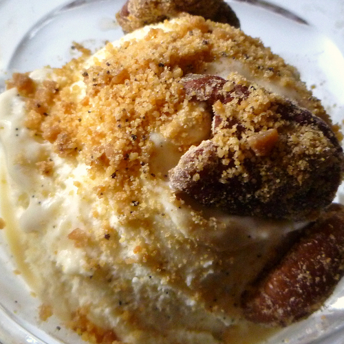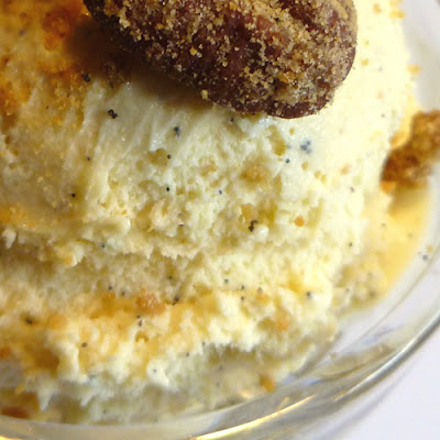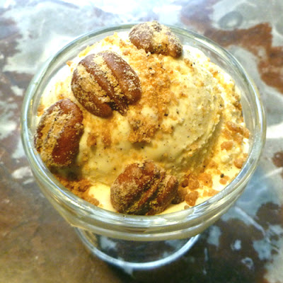 This dish is also a perfect bite of my food philosophy. While I eat a lot of what people would consider "healthy" food, when I indulge, I go all the way. No holds barred. Great ingredients, carefully prepared, with attention to details. And then served in reasonable quantities. You don't need a lot of this ice cream to satisfy. A small scoop, a few nuts, and some quiet time to savor the indulgence and it's a perfect end to a great meal ... or a great reward for surviving a crummy day.