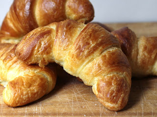 I'm starting my celebration with a very French item (to celebrate her tenure as The French Chef) that is sort of a bread, and is what most people think is a really difficult recipe - croissants.